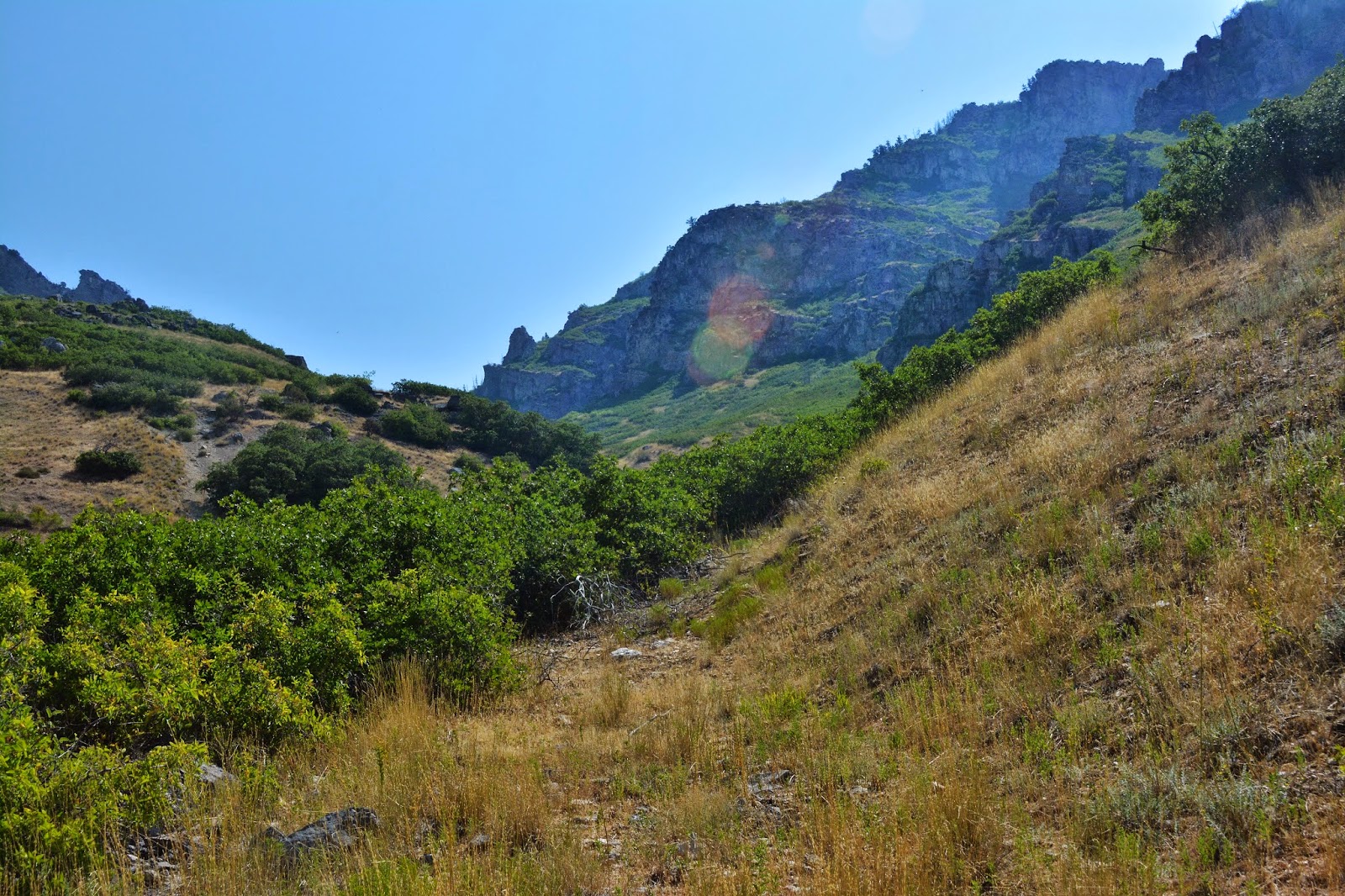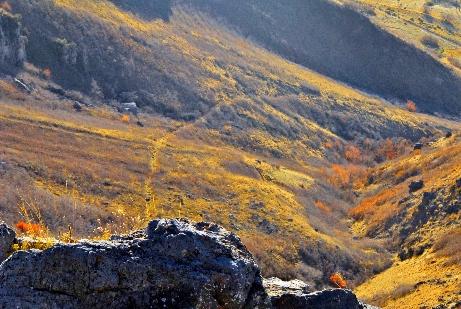 At the bottom of Slide Canyon we get our first glimpse of the pathway coming down the south side of the steep canyon.