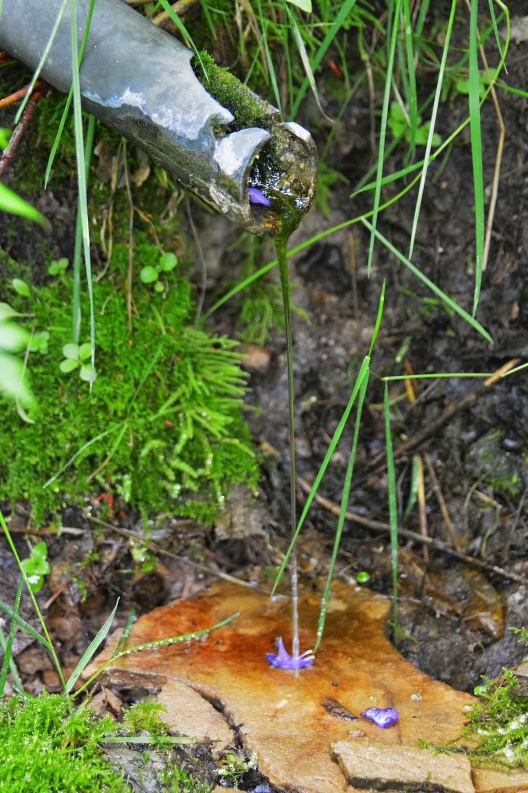 We see that it is a very weak, but steady stream coming out of the pipe