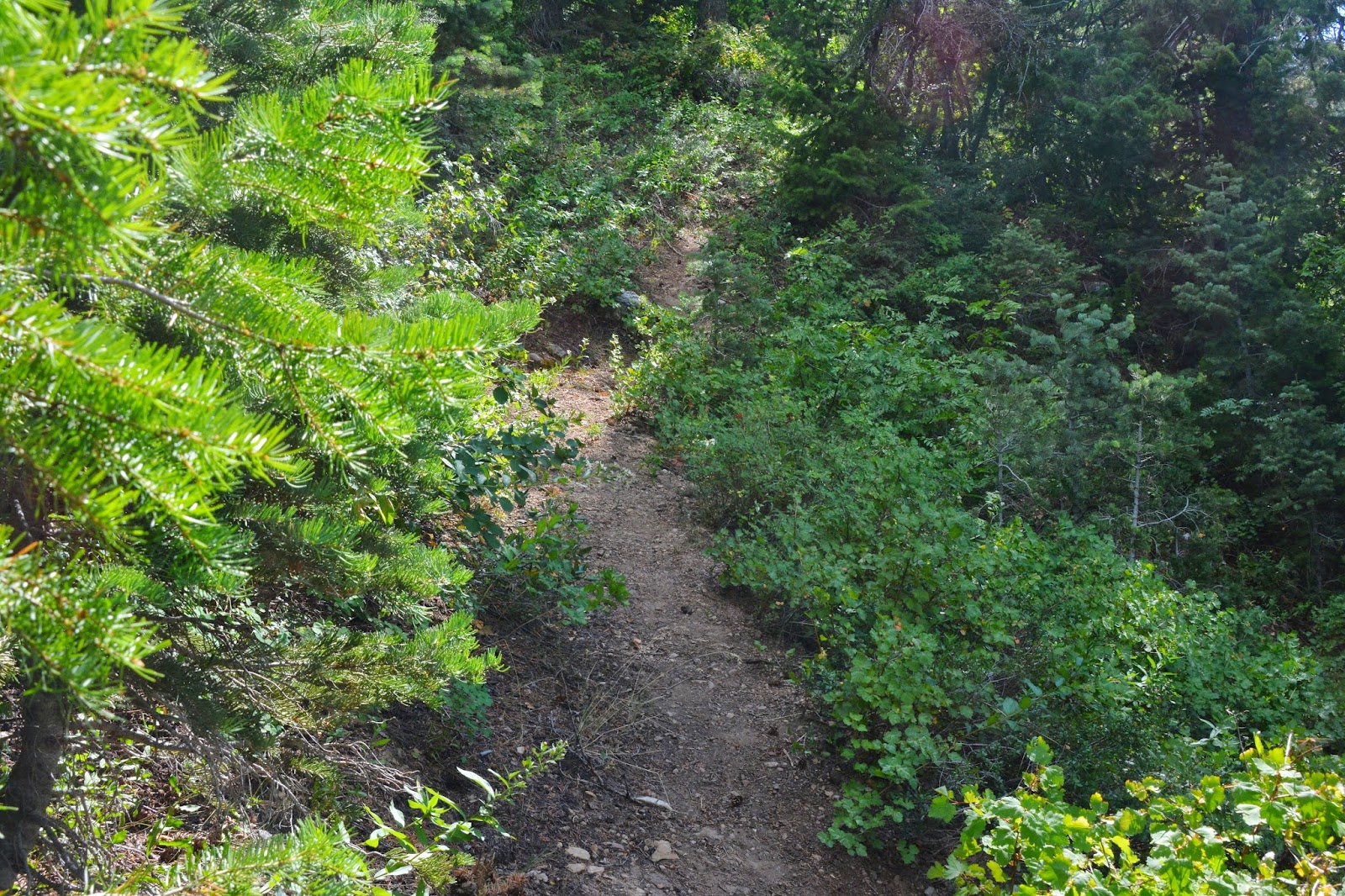 The only major obstacle on the steep trail, sometimes almost hid by vegetation, is this downed tree.  No Trail Crews to make it easy going.