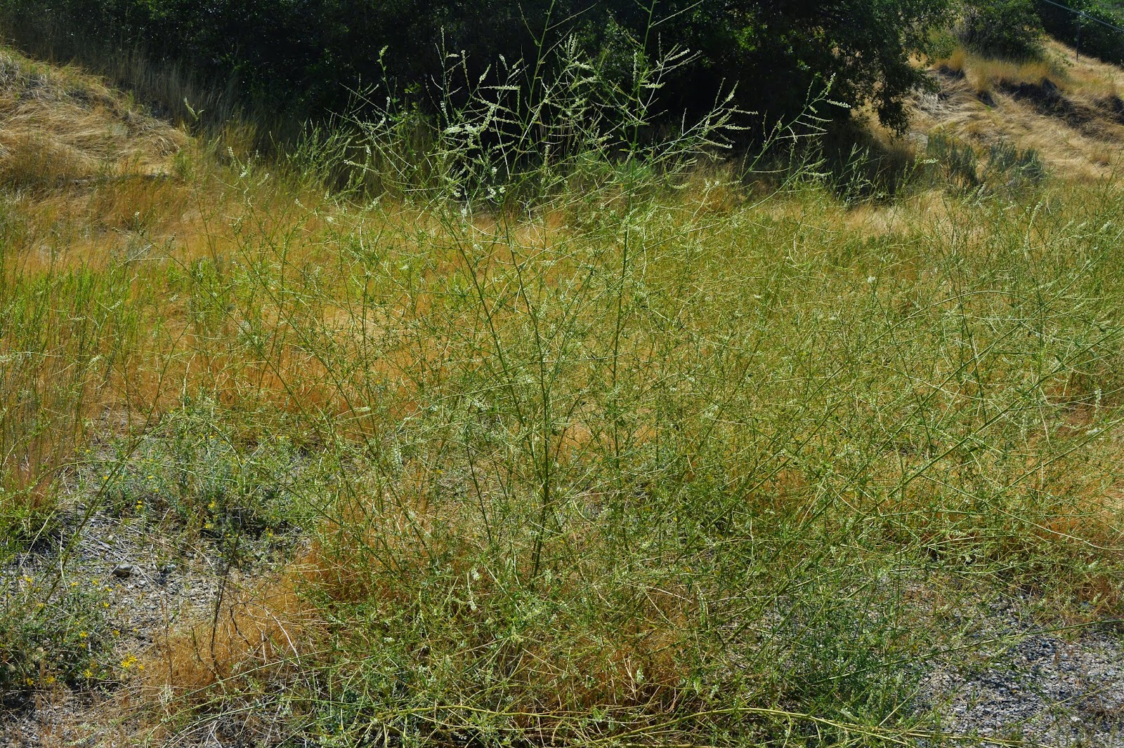 The half-moon cleared area (of scrub oak)  is very steep and covered by tall grass and dry underbrush as seen below.