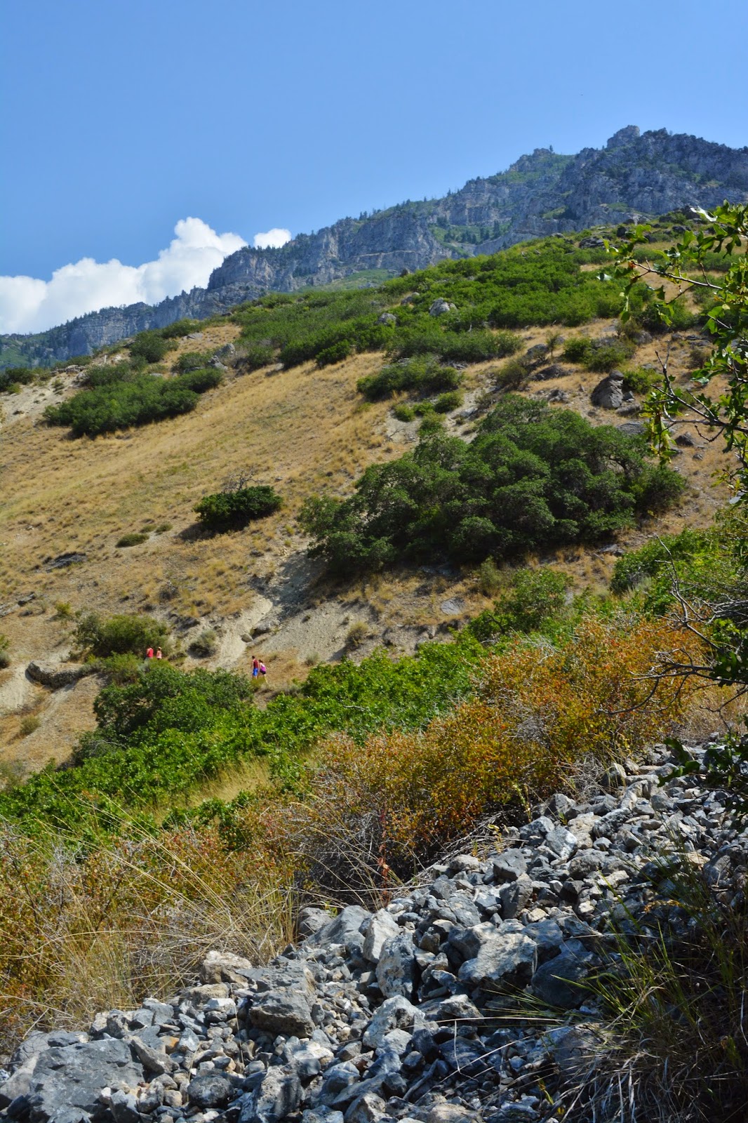 Here we get our first glimpse of hikers on the Y-Trail.  Soon the pathway will take us up above the first turn of  that trail.