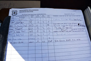 Here’s a view of the Register, with entries from June 3 on mentioning having had to deal with lots of snow. One entry on June 11th lists a party of 4 going for two nights to Fern Lake.