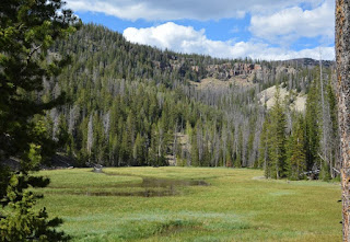 Then down to the North Slope seeing magnificent OSTLER PEAK, and the road to Christmas Meadows and the Christmas Meadows/Stillwater Trailhead.