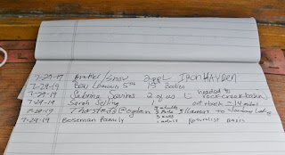 I tried to remedy that in 2019 by fixing up a register and gifted it to the Forest Service, as you can see above, with pages I photocopied filling it as seen below.