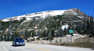 Here we are on 10,759 foot high BALD MT. PASS, with snow here and there, and still no access to the Trailhead and parking lot.