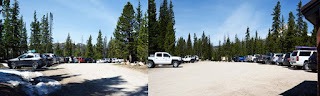 Here is a rough panorama of both sides of the CRYSTAL LAKE TRAILHEAD with a lot of cars as you can see.
