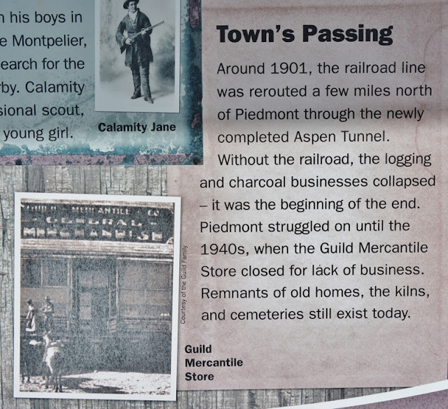 With the Union Pacific Railroad station there where needed water was abundant, as well as wood and charcoal, the community grew to around 200 with  a General Store, two story hotel, school, post office, livery stable, newspaper and four saloons.  The tie hacks in the Uintas provided wood for the kilns, other wood products, and used Piedmont as an entertainment and supply center.  Soldiers from Fort Bridger also used it for rest and recreation on the weekends.