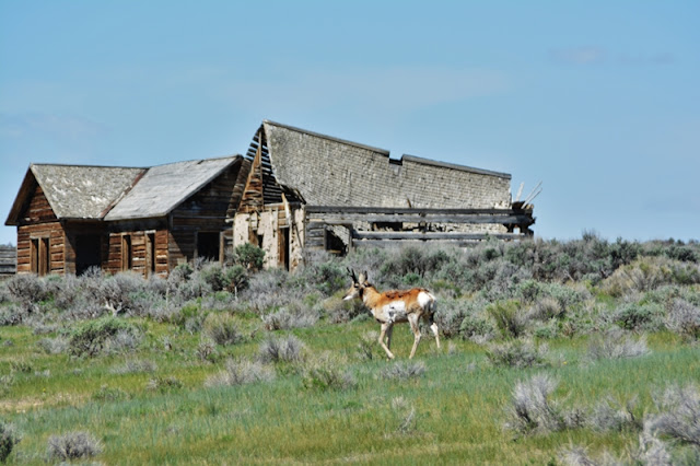 Kelly gave me permission to walk in among the remaining buildings and so I made a quick swing checking them out, along with this antelope that went ahead of me.