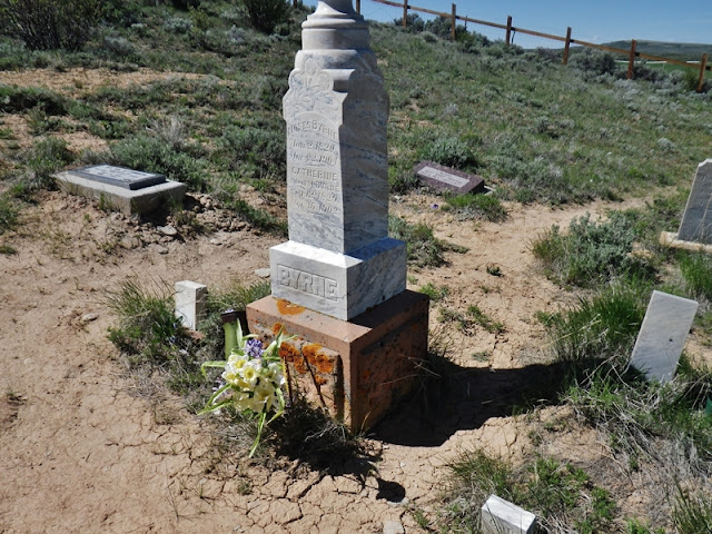 J.D. is Kelly’s current husband who brings his wife yearly to decorate her deceased husband’s grave you see below.  The Byrne family will have their annual Family Reunion next week in Robertson, a ranching community to the east on the road to Mountain View and Ft. Bridger.  Part of their reunion is making the journey to Piedmont to decorate the grave sites.