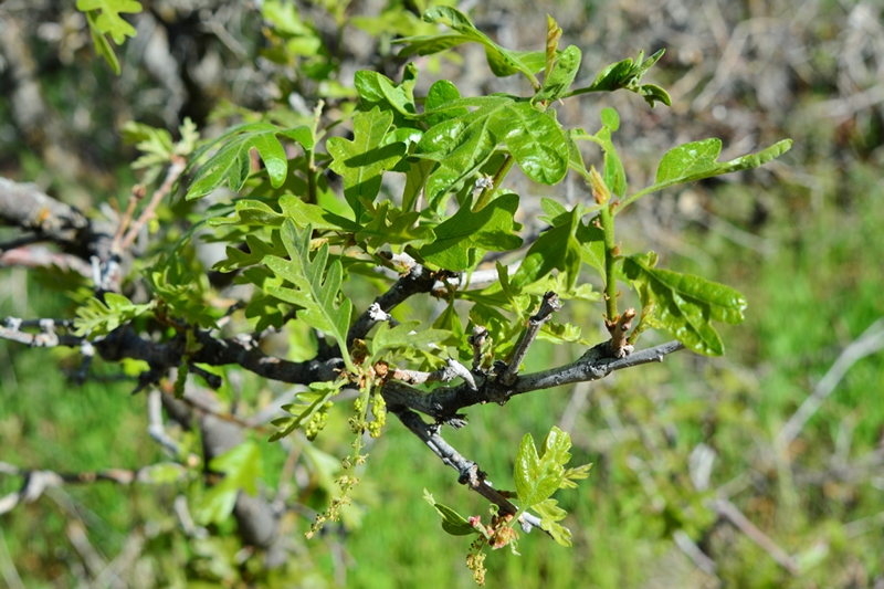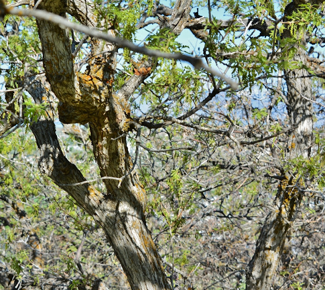 Likely the most common plant of the foothills is what we call “scrub oak,” the real name being “Gambles Oak.”  The leaves are beginning to sprout.  Notice the orange growths on the rough bark.  What is that?