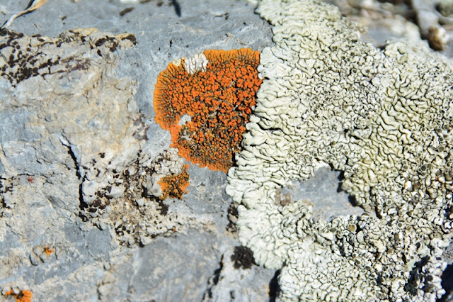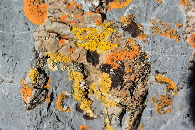 The splotches on these rocks, everywhere from dull unattractive ones to brilliant orange and yellows are LICHENS.