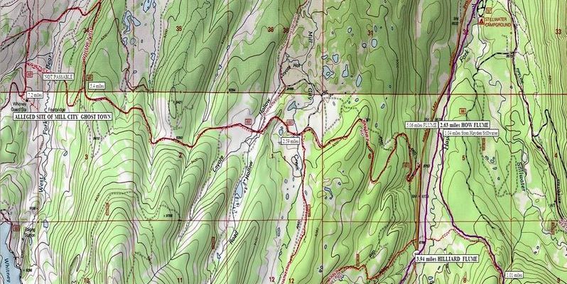 I did a Google search for “Mill City ghost town” and “Hilliard Flume” and found myself in the first positions! I’m the expert? Apparently we are dealing with history that is not too well known. But, down the list I did find a site that pinpoints where the Mill City ghost town was. I”ll insert the page and then comment.